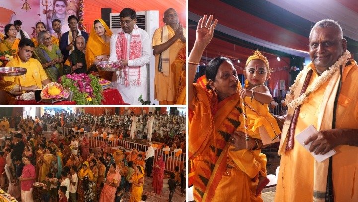 कथा के चौथे दिन भगवान श्रीकृष्ण के प्राकट्य की कथा सुनाई गई। जैसे ही आचार्य जी ने “मध्यरात्रि के समय देवकी के गर्भ से कृष्ण अवतरित हुए” का प्रसंग सुनाया, पूरा पंडाल “हाथी घोड़ा पालकी, जय कन्हैया लाल की” के नारों से गूंज उठा। भक्तों पर मानो भक्ति का सागर उमड़ पड़ा। महिलाएँ मंगलगीत गाने लगीं और युवक ढोलक-झांझ की ताल पर नृत्य करने लगे। उसी बीच मंच से पुष्पों की वर्षा हुई और आचार्य शांतनु जी महाराज ने बालकृष्ण के रूप में सजे शिशु को अपनी गोद में उठाकर नंदबाबा की भूमिका निभाई। यह दृश्य देख श्रद्धालुओं की आँखें श्रद्धा से नम हो गईं।