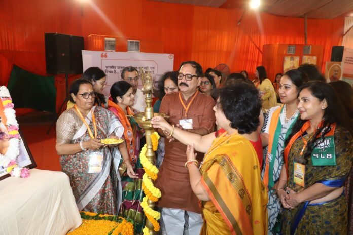 दिल्ली भाजपा महिला मोर्चा की कार्यकारिणी की बैठक बुधवार को नई दिल्ली के भारत मंडपम सभागार में संपन्न हुई। बैठक में पारित राजनीतिक प्रस्ताव में केजरीवाल सरकार को महिला विरोधी और अब तक की सबसे भ्रष्ट सरकार बताया गया। साथ ही प्रधानमंत्री नरेंद्र मोदी के नेतृत्व में महिला सशक्तिकरण के लिए किए गए काम की जमकर सराहना की गई। महिला वंदन अधिनियम, लखपति दीदी सहित कई योजनाओं के लिए मोदी सरकार को धन्यवाद ज्ञापित किया गया। बैठक का उद्घाटन दिल्ली बीजेपी के प्रदेश अध्यक्ष वीरेंद्र सचदेवा ने किया। अपने संबोधन में प्रदेश अध्यक्ष वीरेन्द्र सचदेवा ने कहा कि दिल्ली में भ्रष्ट केजरीवाल सरकार से लोग ऊब चुके हैं। दिल्ली में बदलाव होना तय है।