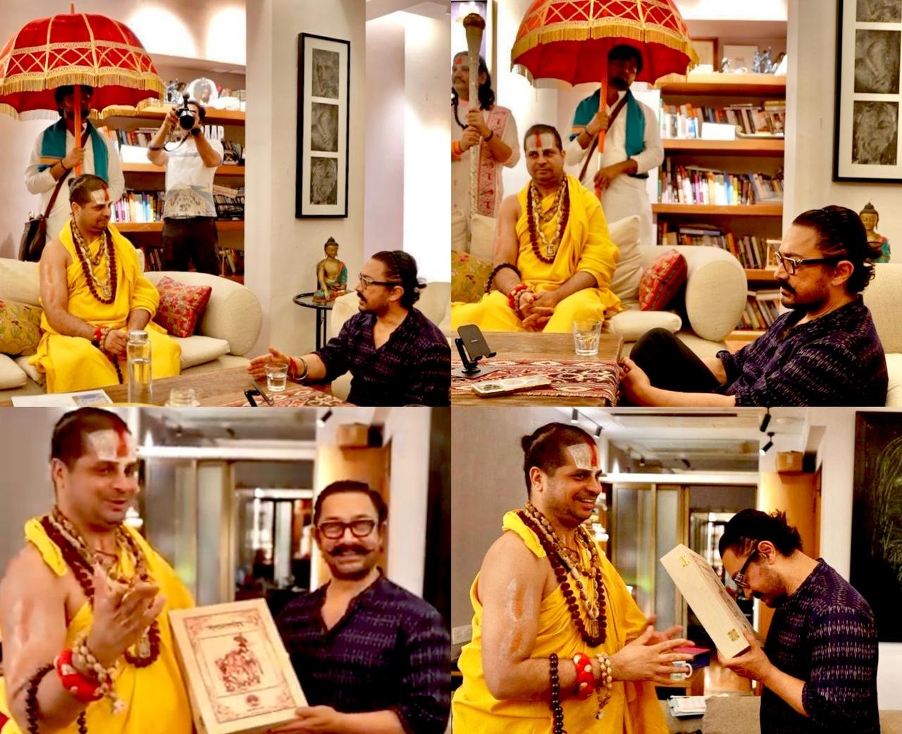 नई दिल्ली। फ़िल्म अभिनेता आमिर ख़ान महर्षि महेश योगी आश्रम के जगद्गुरु स्वामी सतीशाचार्य महाराज के ऐसे मुरीद हुए कि वे छ घंटों तक उनसे धर्म, उपनिषद्र, राष्ट्र धर्म और निज धर्म के भेद सहित विभिन्न विषयों पर चर्चा करते रहे। आमिर ने जगद्गुरु के प्रति आदर व्यक्त करते हुए जमींन पर बैठक उनका मार्गदर्शन प्राप्त किया । जगद्गुरु सतीशाचार्य ने आमिर ख़ान को गीता पुस्तक भेंट कर पीएम मोदी का 2047 में भारत को विकसित बनाने का संदेश भी दिया । इस पर आमिर ख़ान ने कहा बोल उठे अरे वाह ।