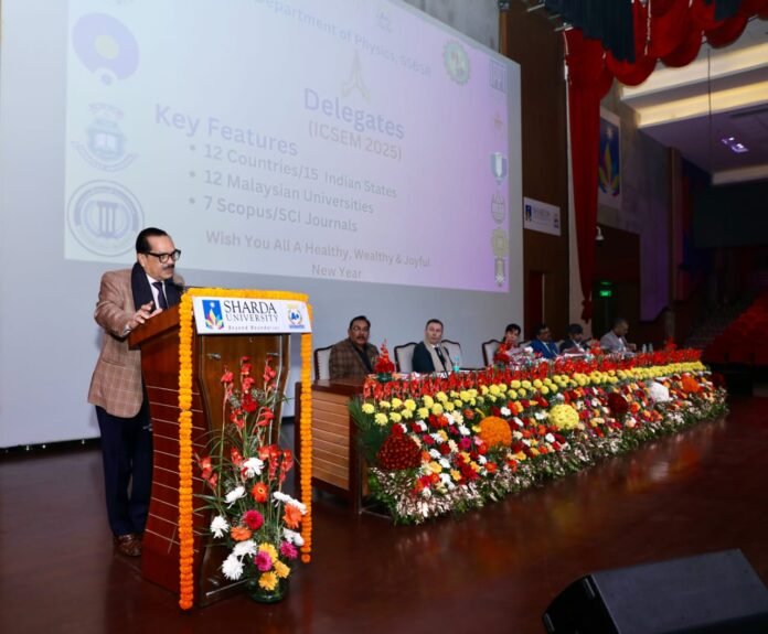 ग्रेटर नोएडा में नॉलेज पार्क स्थित शारदा यूनिवर्सिटी के स्कूल ऑफ बेसिक साइंसेज एंड रिसर्च ने सामग्री विज्ञान और इंजीनियरिंग विषय पर चार दिवसीय अंतरराष्ट्रीय सम्मेलन का आयोजन किया। मुख्य अतिथि पुर्तगाल की प्रोफेसर मारिया, पोलैंड के प्रोफेसर करोल स्ट्रजलकोव्स्की, विश्वविद्यालय के चांसलर पीके गुप्ता, वाइस चांसलर डॉ सिबाराम खारा, प्रो वाइस चांसलर परमानंद ने शुभारंभ करते हुए स्थायी ऊर्जा प्रणालियों पर जोर दिया। यूनिवर्सिटी में आए अतिथियों ने बताया कि इस आयोजन का उद्घेश्य दुनिया भर के वैज्ञानिकों और शोधकर्ताओं को उपयोगी आदान-प्रदान, विचार-मंथन सत्र और सामग्री विज्ञान के विभिन्न पहलुओं में अनुसंधान आवश्यकताओं के लिए एक मंच प्रदान करना है।भौतिकी विभाग, शारदा स्कूल ऑफ बेसिक साइंसेज एंड रिसर्च, शारदा विश्वविद्यालय 5वें अंतर्राष्ट्रीय सामग्री विज्ञान और इंजीनियरिंग सम्मेलन 2025 (ICSEM-2025) का आयोजन कराया गया था।