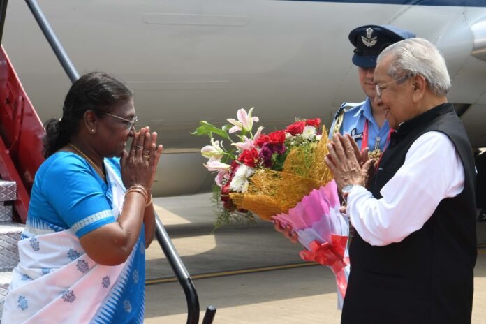 छत्तीसगढ़ के दो दिवसीय प्रवास पर बृहस्पतिवार को रायपुर पहुंचीं राष्ट्रपति द्रौपदी मुर्मू ने अपने कार्यक्रम की शुरुआत राजधानी स्थित जगन्नाथ मंदिर में पूजा अर्चना से की। उनके साथ उनकी पुत्री इतिश्री मुर्मू भी थीं। अधिकारियों ने बृहस्पतिवार को यह जानकारी दी। अधिकारियों ने बताया कि राष्ट्रपति मुर्मू आज सुबह 11 बज कर लगभग पांच मिनट पर वायुसेना के विशेष विमान से रायपुर के स्वामी विवेकानंद विमानतल पहुंचीं जहां राज्यपाल विश्वभूषण हरिचंदन और मुख्यमंत्री भूपेश बघेल ने उनका स्वागत किया। उन्होंने बताया कि राष्ट्रपति मुर्मू और उनकी पुत्री इतिश्री मुर्मू विमानतल से रायपुर के गायत्री नगर स्थित प्रसिद्ध जगन्नाथ मंदिर गईं। उनके साथ राज्यपाल हरिचंदन और मुख्यमंत्री बघेल भी थे। राष्ट्रपति और अन्य गणमान्य लोगों ने मंदिर में पूजा अर्चना की।